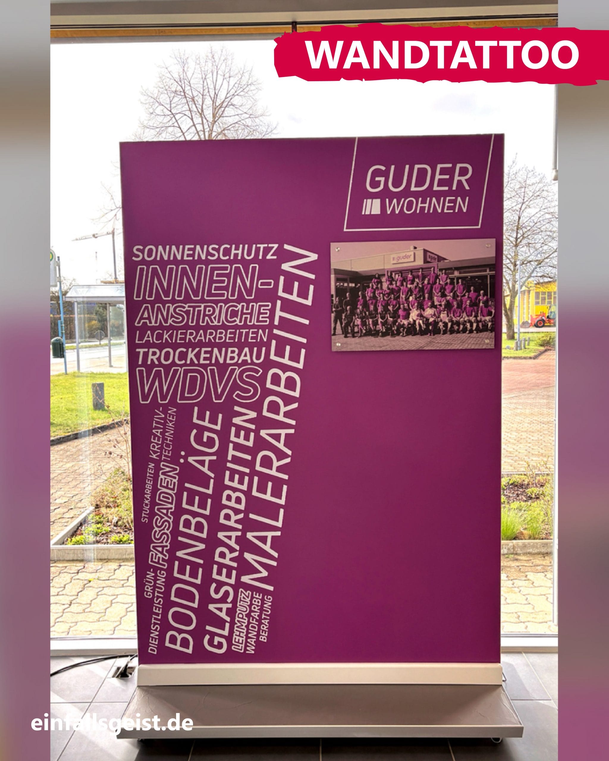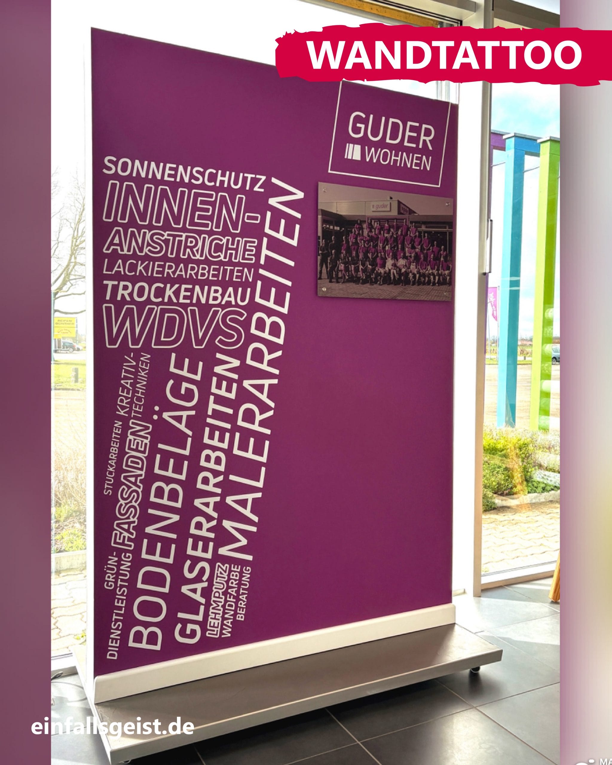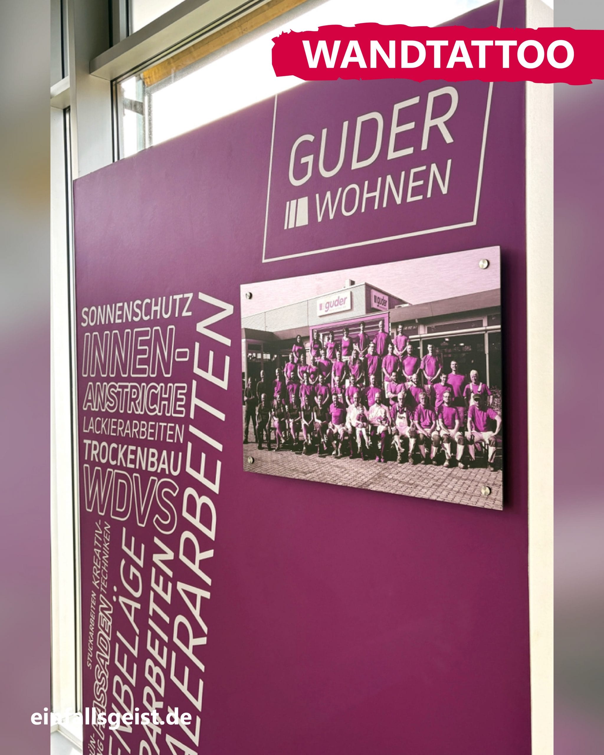 Von der Idee bis zum fertigen Wandtattoo inklusive Teamfoto.